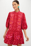 The Red Olivia Mini Dress is the perfect additions to your next packing list! Featuring a mini length, three-quarter length puff sleeve, and tiered skirt, this ultra flattering mini is sure to impress! We styled it with chunky sandals, a handbag, and a fun, statement earring!
