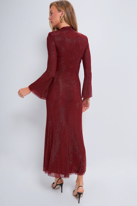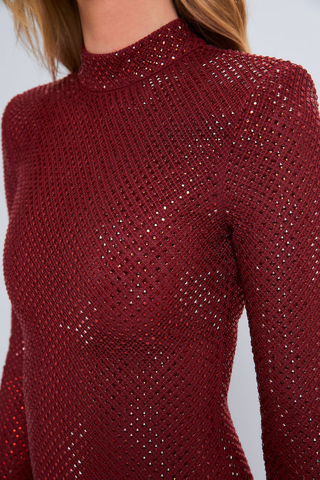 Cut from rhinestone-studded fishnet, this midi Dress boasts a beautiful liquid-like finish with timeless mock neck and flared hem. Made for slipping into any RSVPs and holiday parties, style it with some heels and a clutch for a jaw-dropping statement look!