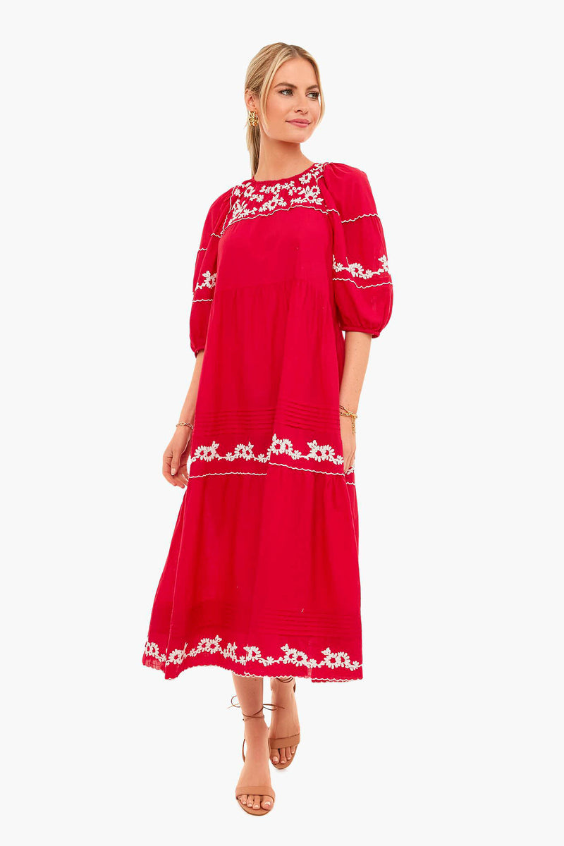 The Heirloom Dress is made to swing and sway. A gently curved and relaxed empire waist leads to a skirt decorated with pintucks and delicate scallops. Finished with billowing elbow-length sleeves and 1930s-inspired floral embroidery, just add strappy sandals and a tote for a feminine, chic look.