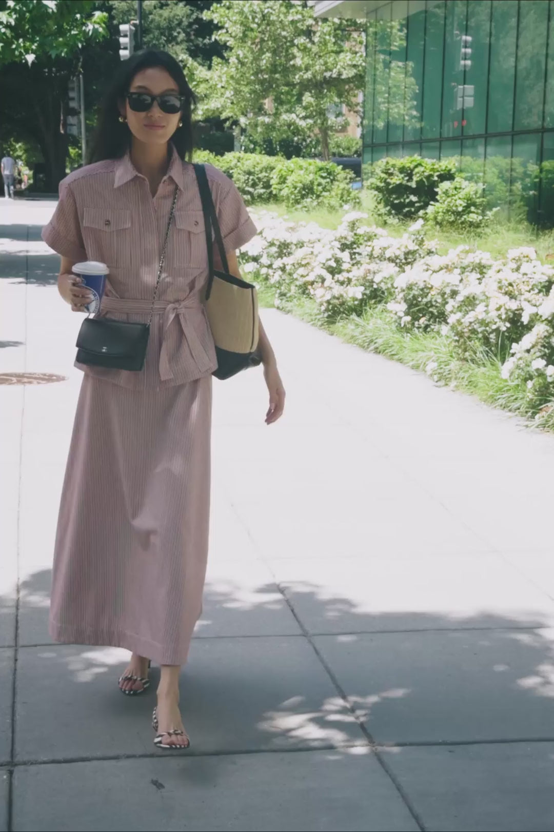 The Red Stripe Evelyn Skirt is an easy feminine style with vintage-appeal. A clean A-line silhouette, this midi features a side zip closure and elastic back for perfect fit. The classic red and navy striped pattern will pair perfectly with a simple white tank and sneakers, or dressed up with the matching Red Stripe Belted Ava Jacket for a sophisticated set!