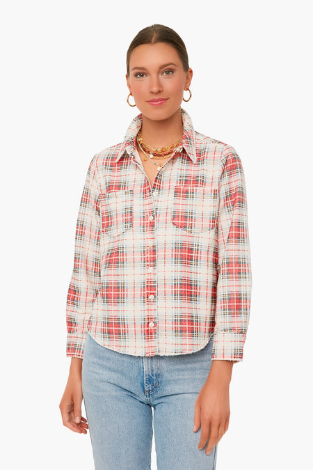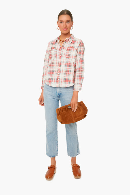 The Redding Plaid Scouting Shirt uses a vintage technique of printing plaid on a brushed fabric, which fades with time for an authentic patina of age and wear. It has a soft, warm feel and a flattering, slightly shrunken swingy fit with a traditional button front. Pair with leather accessories for a fall-inspired look.
