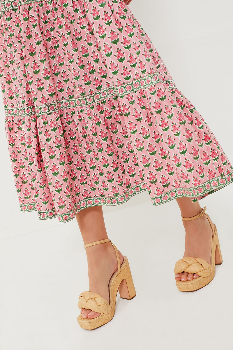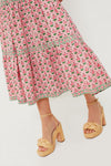Block-printed by hand in the feminine Rose Hyacinth floral, the Lucia skirt adds a pop of color to any outfit. With an intricate, border waistband, pretty gathered tiers, and a flattering A-line silhouette, this maxi pairs perfectly with the matchingRose Border Lucia Top or a simple white blouse.