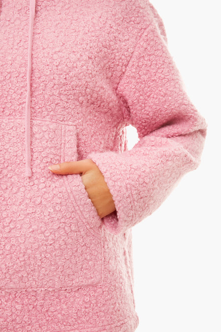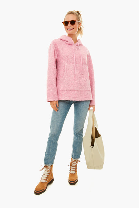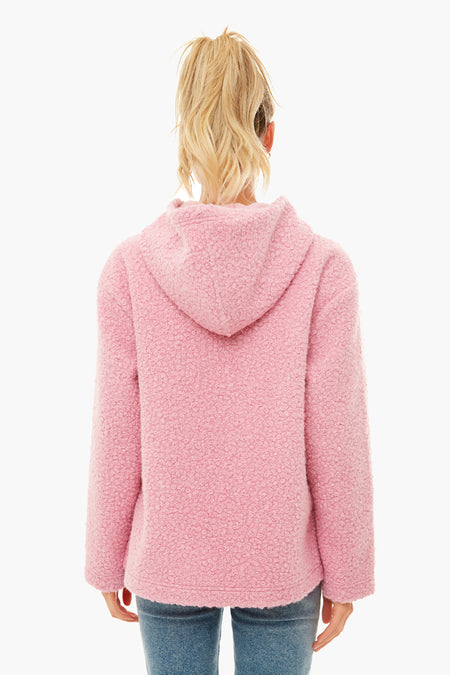 The Bear Hoodie is a cozy sherpa hoodie with kangaroo pockets. This punchy pink piece is perfect for those mornings you want to throw something on that is super comfortable but will also look put-together and fashion-forward. Add denim and shearling boots for a comfortable off-duty weekend look.