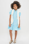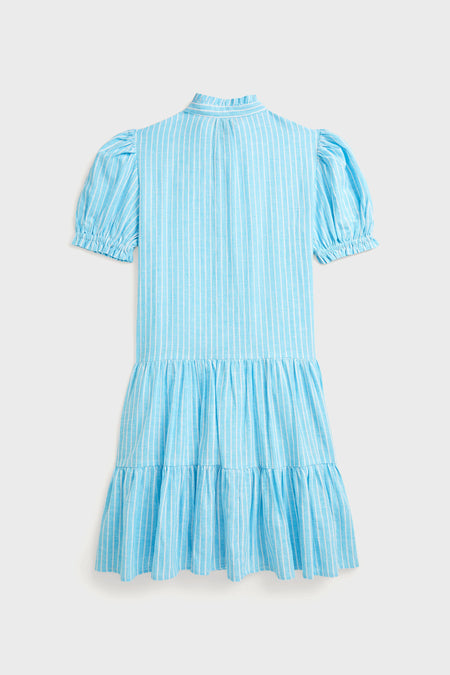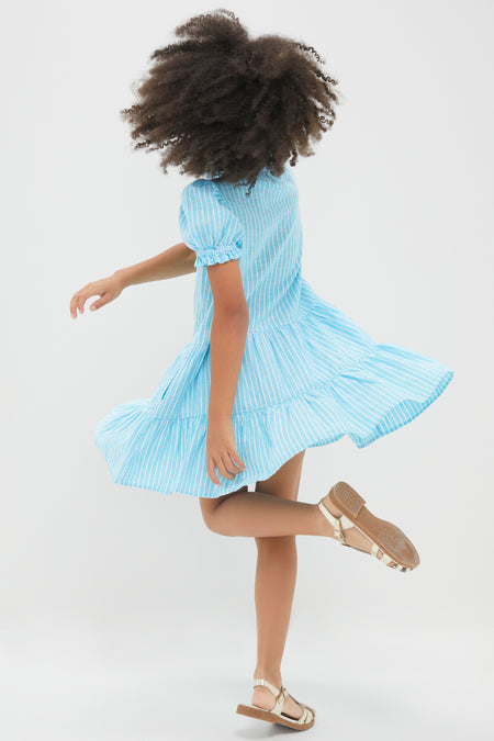 The Ruffle Collar Short-Sleeve Tiered Striped Dress is the perfect warm weather dress for your little one. With a drop-wait, mock-neck, and puff short sleeves, she is sure love this piece. Perfect for school events, summer BBQs, or just daily wear!