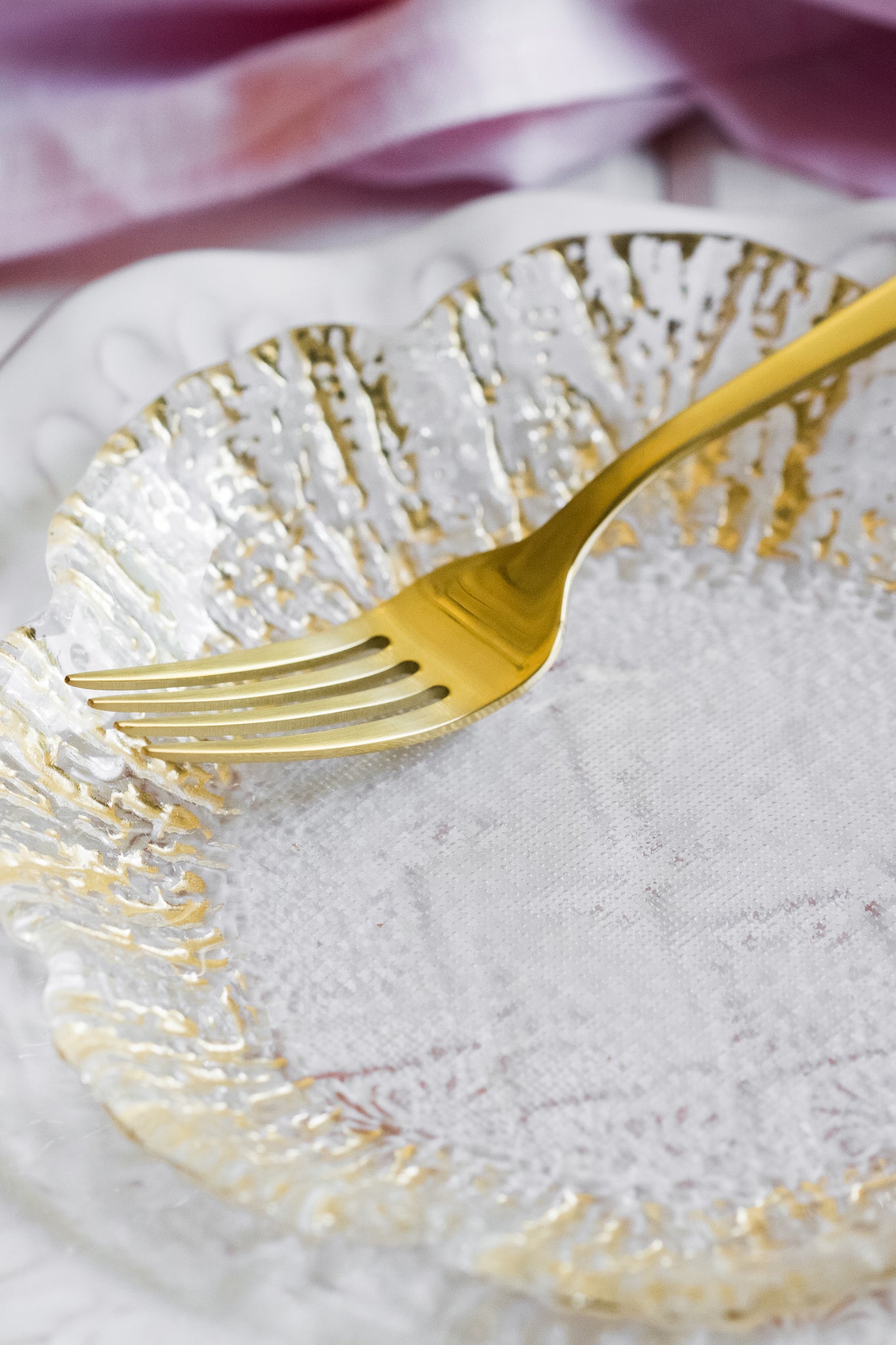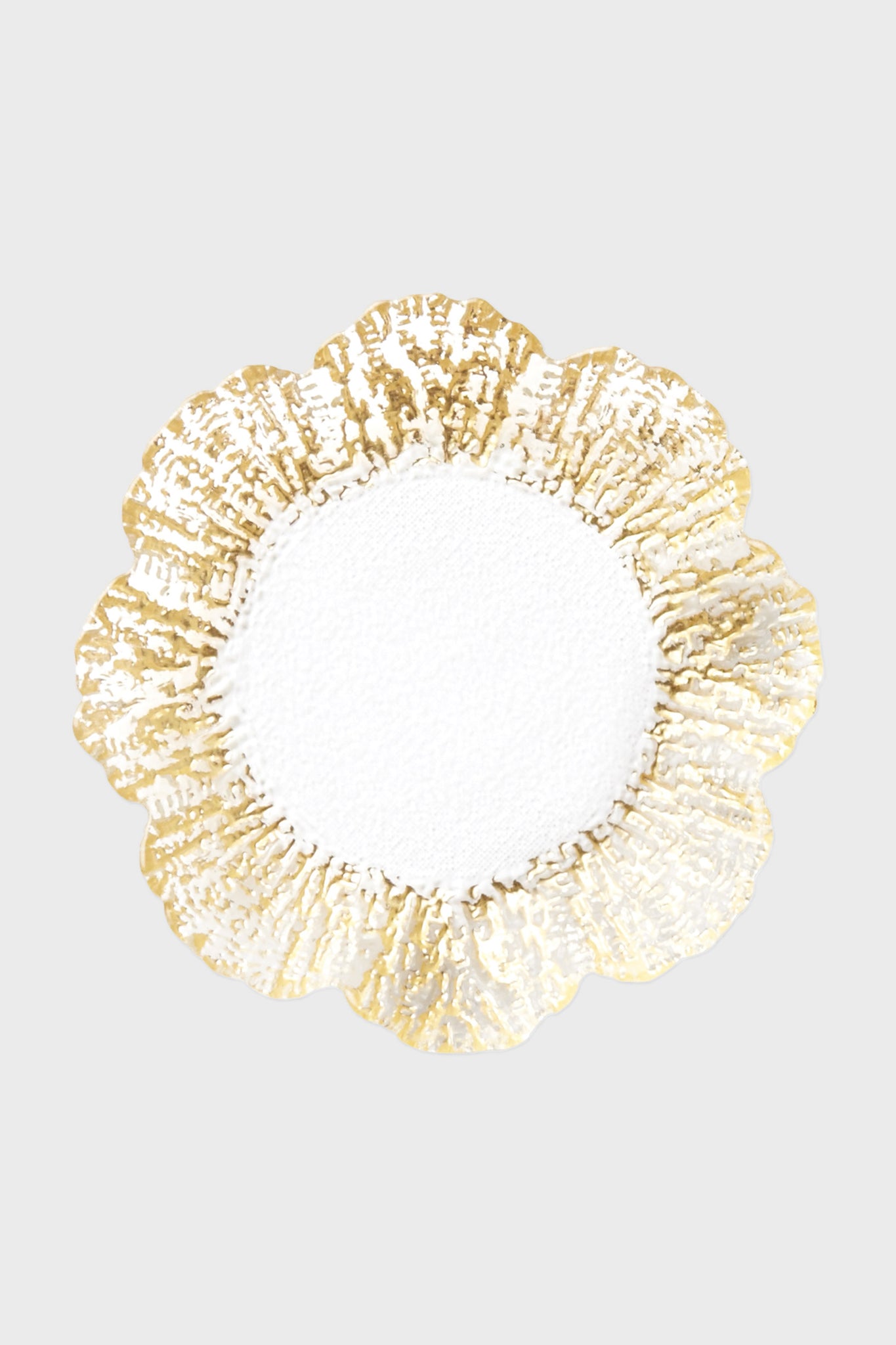 - Scalloped edges with gold detailing