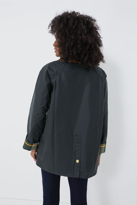 - Material: 100% Waxed Cotton (outer), 65% Polyester, 35% Cotton (lining)