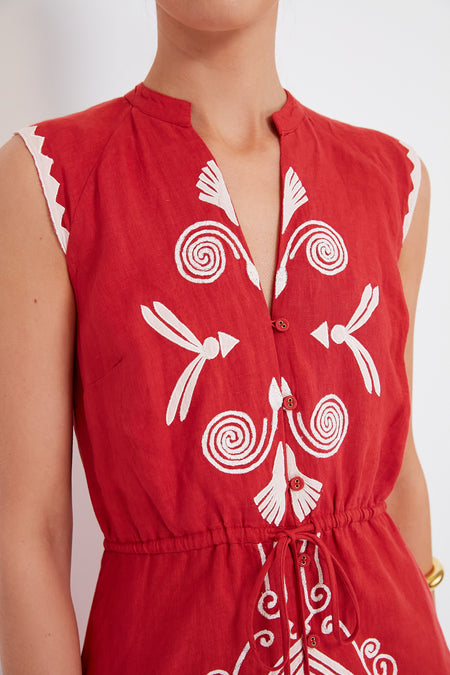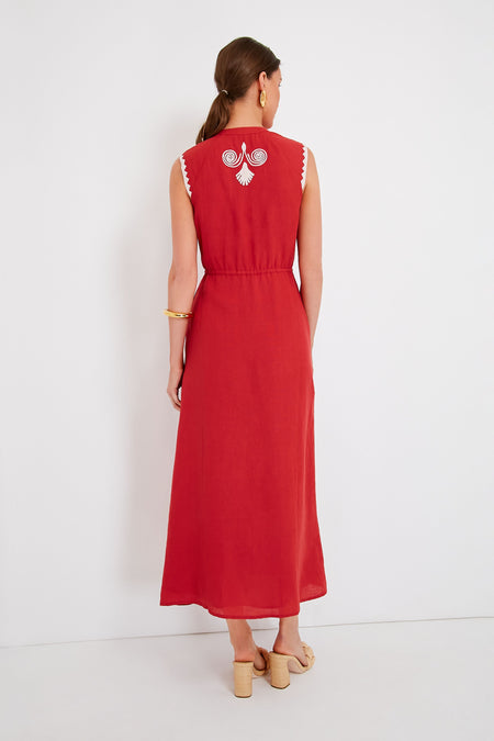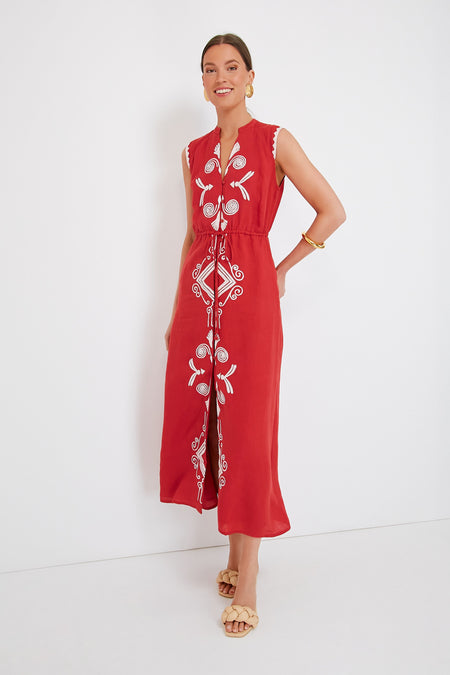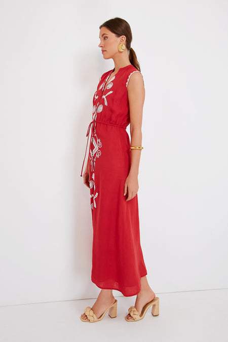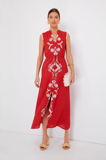 The Salsa Sleeveless Yvonne Dress is an instant head turner thanks to its fiery red hue. Ready for summer, this sleeveless style features a flattering notched neckline, adjustable tie waist belt, and gorgeous white trim accents. Perfect for backyard get togethers and lunches spent catching up with old friends, we are pairing this sassy maxi with heels and gold accessories for a dramatic effect.