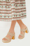 Platform silhouette, block heels, braided raffia, the Natural Gem Heels are ready for vacation and seaside dinners! Instantly elevate any warm-weather look with these sandals, pair with a breezy sundress and beachy accessories for a fun and sassy vacation look.