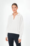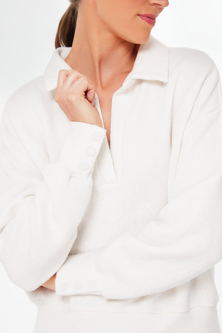 Who ever said loungewear can't be chic? Elevate your look while remaining comfy as ever in the Sandstone Maeve Top. A collared neckline brings the sophistication, while a relaxed fit and a fleeced fabric ensure you will never want to take this layer off. Bring a fresh look to this off-duty staple by pairing it with leggings and a tote for morning coffee runs, or try it with denim and cool-girl sneakers for weekend adventures.