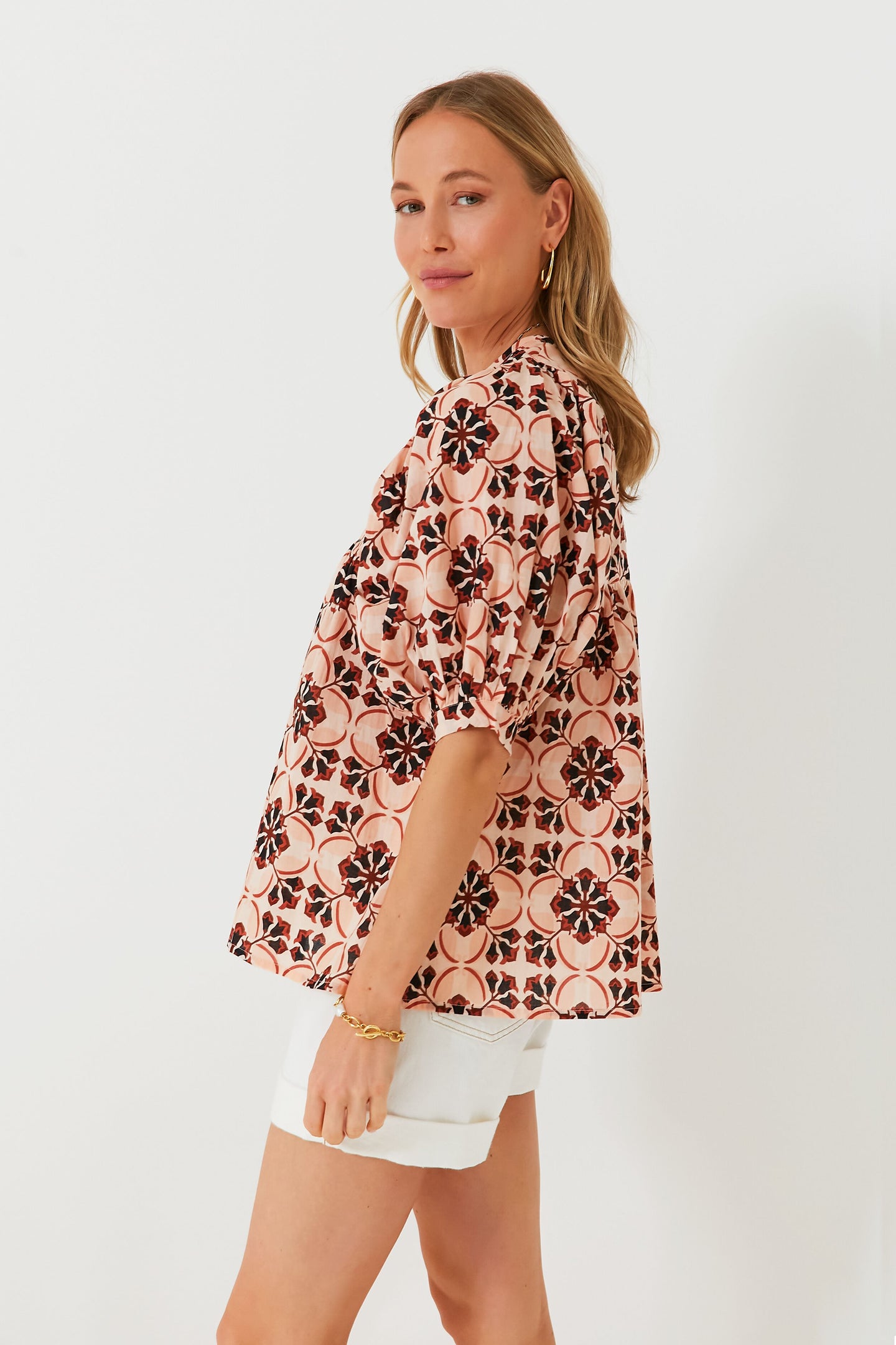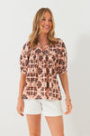With a print inspired by motifs seen at historical sites, the Sayulita Print Thalia Top is the definition of breezy style. In ultra-wearable neutral shades with an earthy feel, this boho blouse is perfect for packing to go on a warm weather getaway, or for wearing around town when you want to feel other-worldly. Made from lightweight cotton that feels incredible against the skin, this silhouette is completed with a notched neckline, tassel ties, and a relaxed fit that pairs well with denim, sandals, and sunnies.