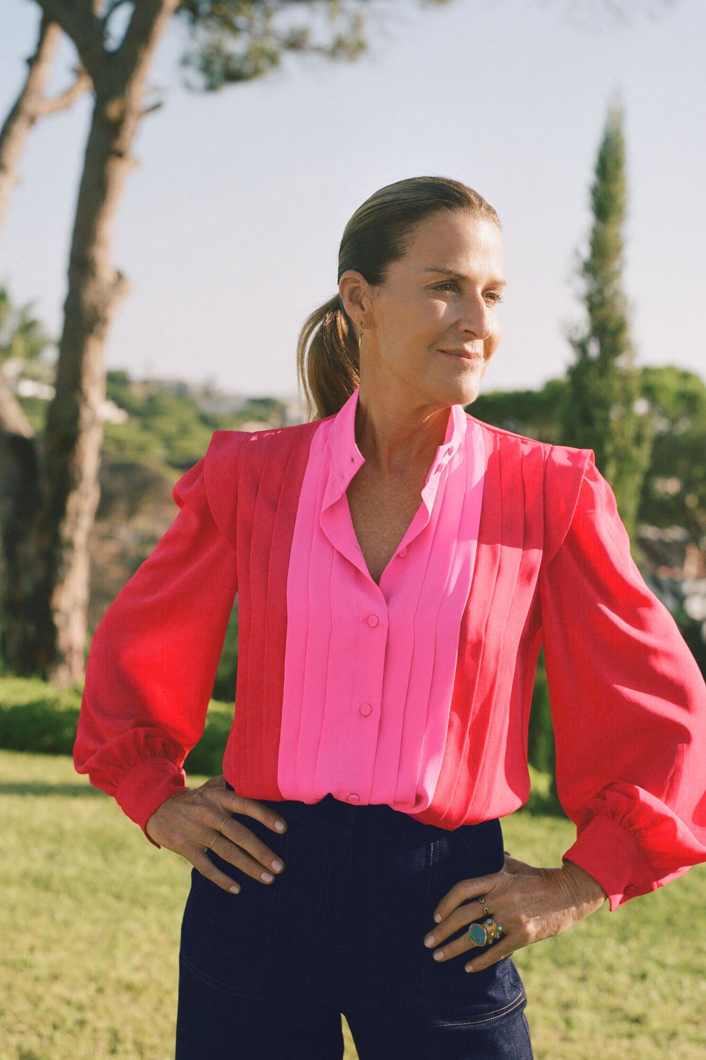 Inspired by her father David Hicks, India loves to incorporate vibrating (but never clashing) colors into her life as much as possible - including her fashion. Striking up close and from a distance, this colorful piece is an ode to the man who brought color into India’s life everyday. Easy to pair with a simple bottom or go even more vibrant with an embellished heel, this blouse was made to stand out.