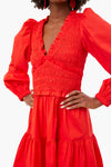 The Scarlet Gaia Solid Cotton Mini Dress features a relaxed silhouette and puff sleeves. A smocked bodice and ruffle accents add a feminine feel to this style. Pair with bold earrings and a margarita to dance the night away!