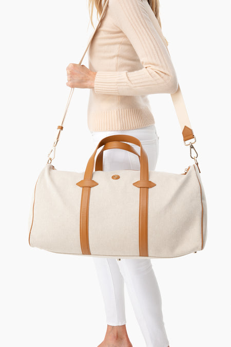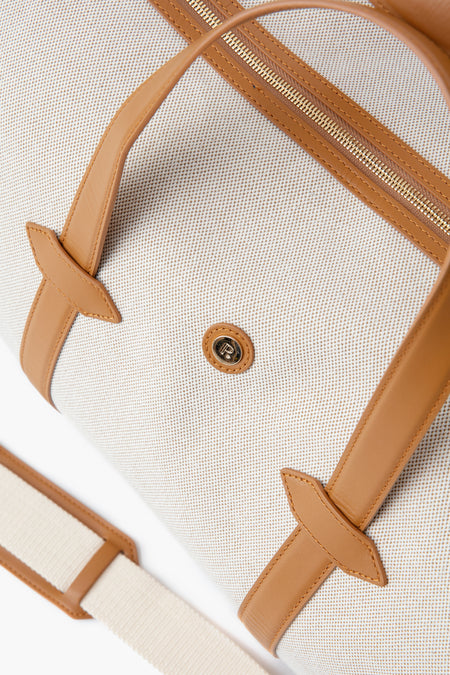 Paravel's lightest weight piece of luggage yet, the Main Line is a hold-all duffel bag perfect for long trips or weekend getaways. This style is constructed from signature water and spill-resistant cotton canvas with leather trim and handles. Featuring a removable woven shoulder strap, two interior zip pockets, and a two-way, lockable zipper, this bag is versatile and practical.