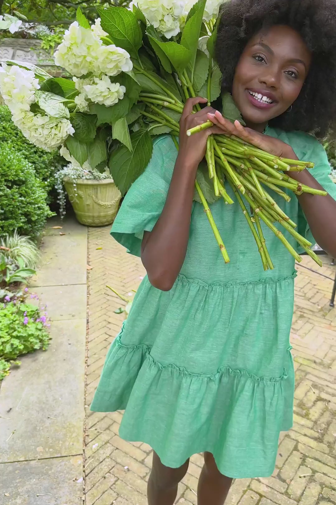 - Ruffle details on neck and skirt seams