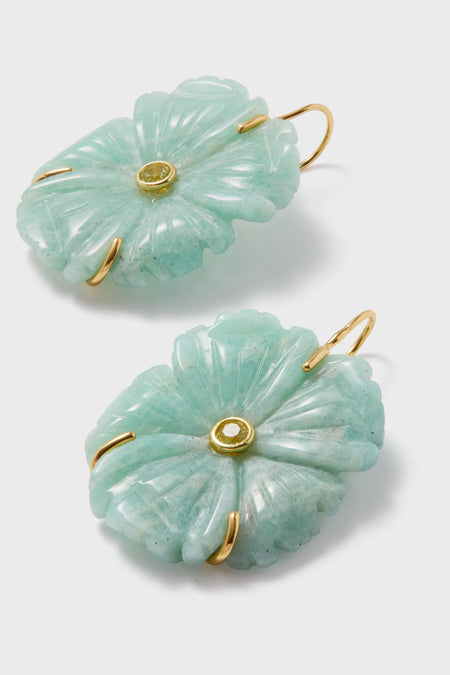 Bloom big in the Seafoam New Bloom Earrings! This blue-green pair of a stunning carved flower earrings crafted in gold-plated brass earwire and faceted peridot stones. Perfect for adding a touch of color or a hint of shine to a basic look, these look incredible with a classic blouse and denim as well as on an elevated dress!