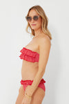 Fun and flirty, the Seersucker Kaia Top is the perfect playful swimsuit. This silhouette features a bright and bold colorway with cheery stripes, as well as a strapless neckline and layered ruffles for a touch of dramatic volume. Complete your look with the matching bottoms, then throw a caftan on over the top or add your favorite sandals for sunny days spent by the pool!