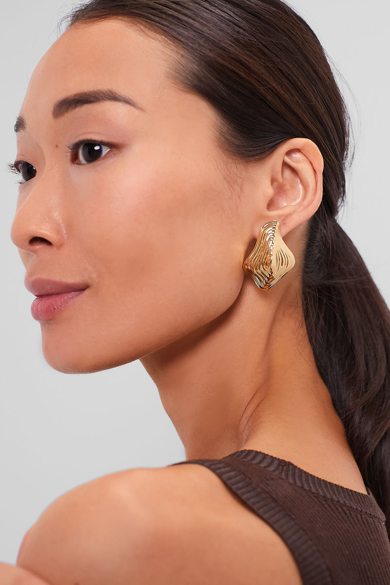 The Shiny Brass Relic Earrings are a head-turning statement piece that will endure for seasons to come. A sculptural silhouette etched with radiating ridges brings artisanal beauty to these abstract drop earrings. Add these stunners to your collection and bring some shine to your style.