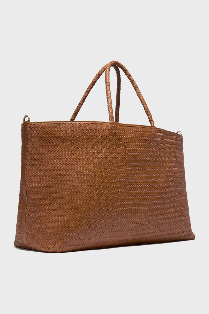 Ditch the nylon duffel and hit the road in style with the Black Le Traveler. Crafted from handwoven leather, this tote comes with a thick leather strap designed for shoulder comfort and the top handles fit over your roller suitcase as a perfect carry-on. Perfect for weekend trips and week-long getaways (or longer for the judicious packer), this style will make your every trip feel five-star.