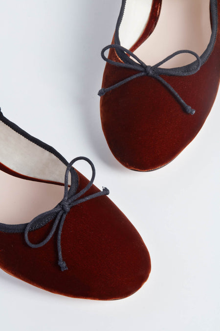 We love the on-trend yet sweet silhouette of the Sienna Velvet Chiara Mary Janes. Beautifully crafted in a rich, terracotta hue with delicate piping, these flats can elevate any outfit. Featuring an adjustable upper foot strap for the perfect fit and a padded footbed for all day wear, these shoes are great for running errands and everyday adventures alike. Style with your favorite denim, a button-down, and a blazer for a polished look, or with a cozy blazer and leather leggings for a comfy yet cute styling!