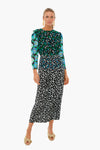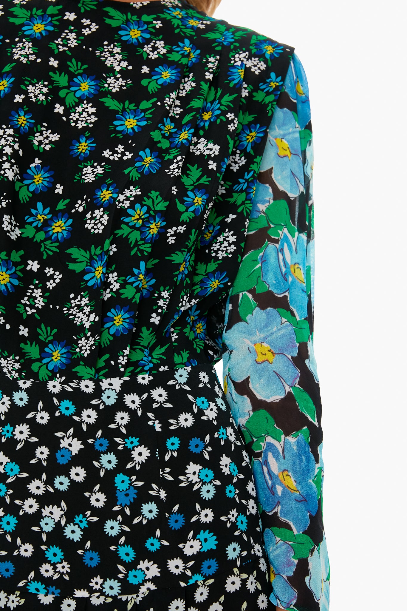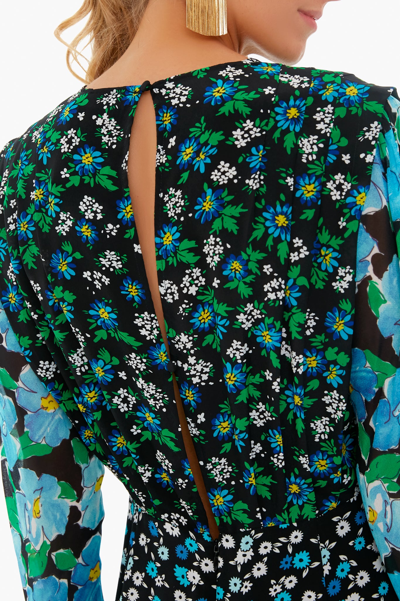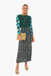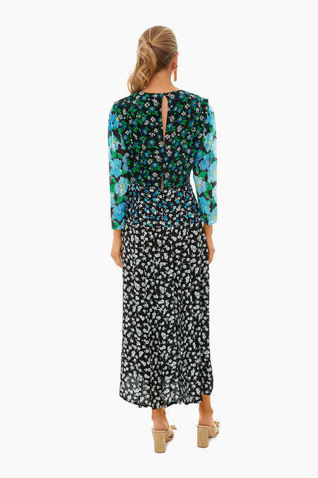The Silk Jazz Dress There’s no such thing as too many prints as demonstrated by this gorgeous frock. Made from silk, it has a midi length, crew neckline, long sleeves, georgette sleeves in complimenting floral patterns. Pair with statement shoes and earrings for a fun date night look!