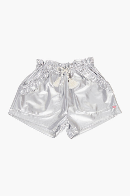 We love these playful Girls Theodore Short. These shimmery shorts feature a stylish ruffle embellishment at the side pocket and a fixed non-adjustable rope tie at the elastic waist. Pair with a simple tee for a lively look that works well for the playground and beyond.