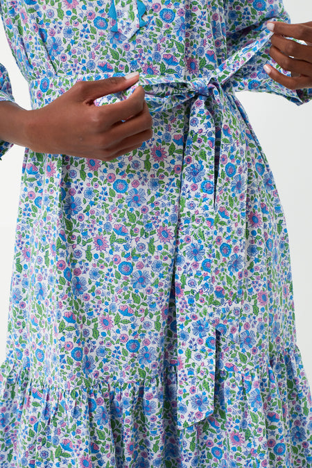 A flattering and versatile wardrobe favorite, the Sky Meadow Margot Dress is covered in the most gorgeous botanical print that will have you dreaming of frolicking in a flower field. Elegant details like a point collar, blouson sleeves with banded cuffs, and a partial button front placket are balanced with the fun addition of a matching ric-rac trim detail scattered throughout. Wear this lovely midi loose for an effortless look, or cinch in the waist with the optional self-tie belt to dress it up for occasions and add some gold jewelry to finish off your outfit!
