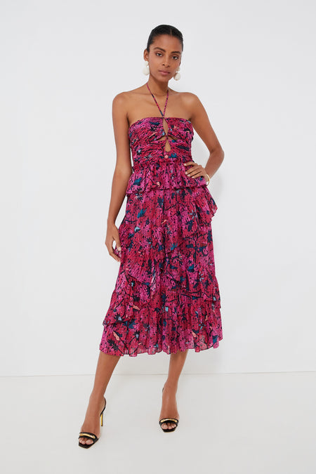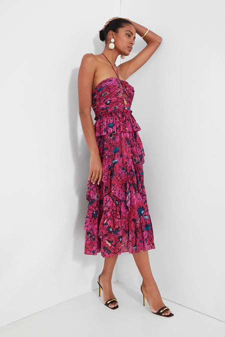 Defined by intricate details, the Snapdragon Simona Dress is simply beautiful. Featuring a flirty tiered ruffle skirt and cutout bodice, this stunner is sure to stand out. The elasticized waist and halter neckline also ensure a flattering fit, perfect for dancing the night away out on the town or at an outdoor wedding. Style with platform pumps, statement earrings, and a shoulder bag for your next event.