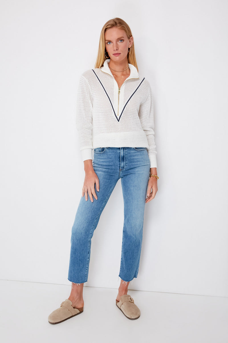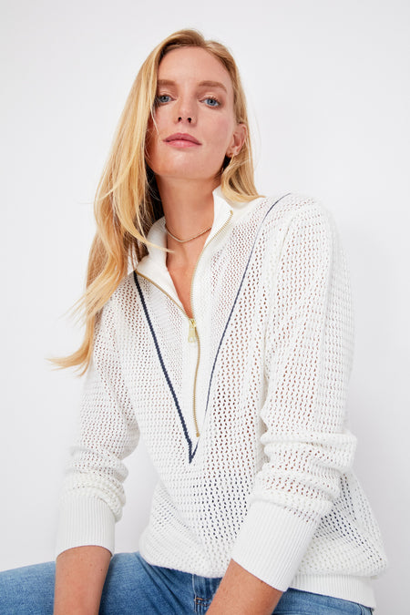 Combining fashion and function, the Snow White Calva Knit is ideal for on or off court styling. This long sleeve half-zip polo features a contrast V-panel and high neck, giving it a unique and modern look. Made using a textured open knit fabric made from soft cotton, it’s the perfect layering piece for cooler days, whether you wear it with shorts or leggings for a quick game of pickleball, or with denim for running errands around town.