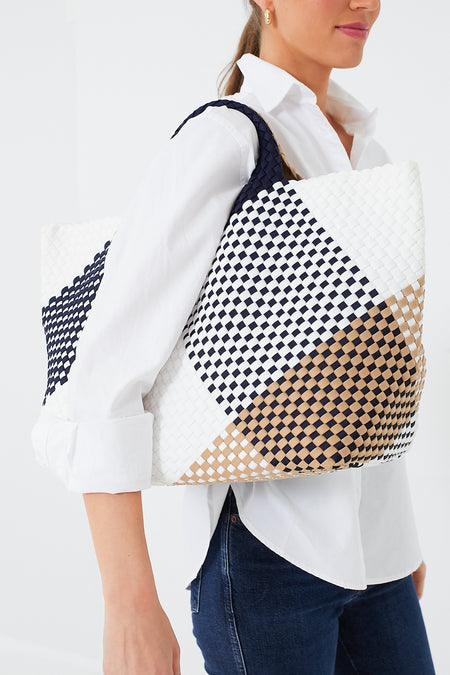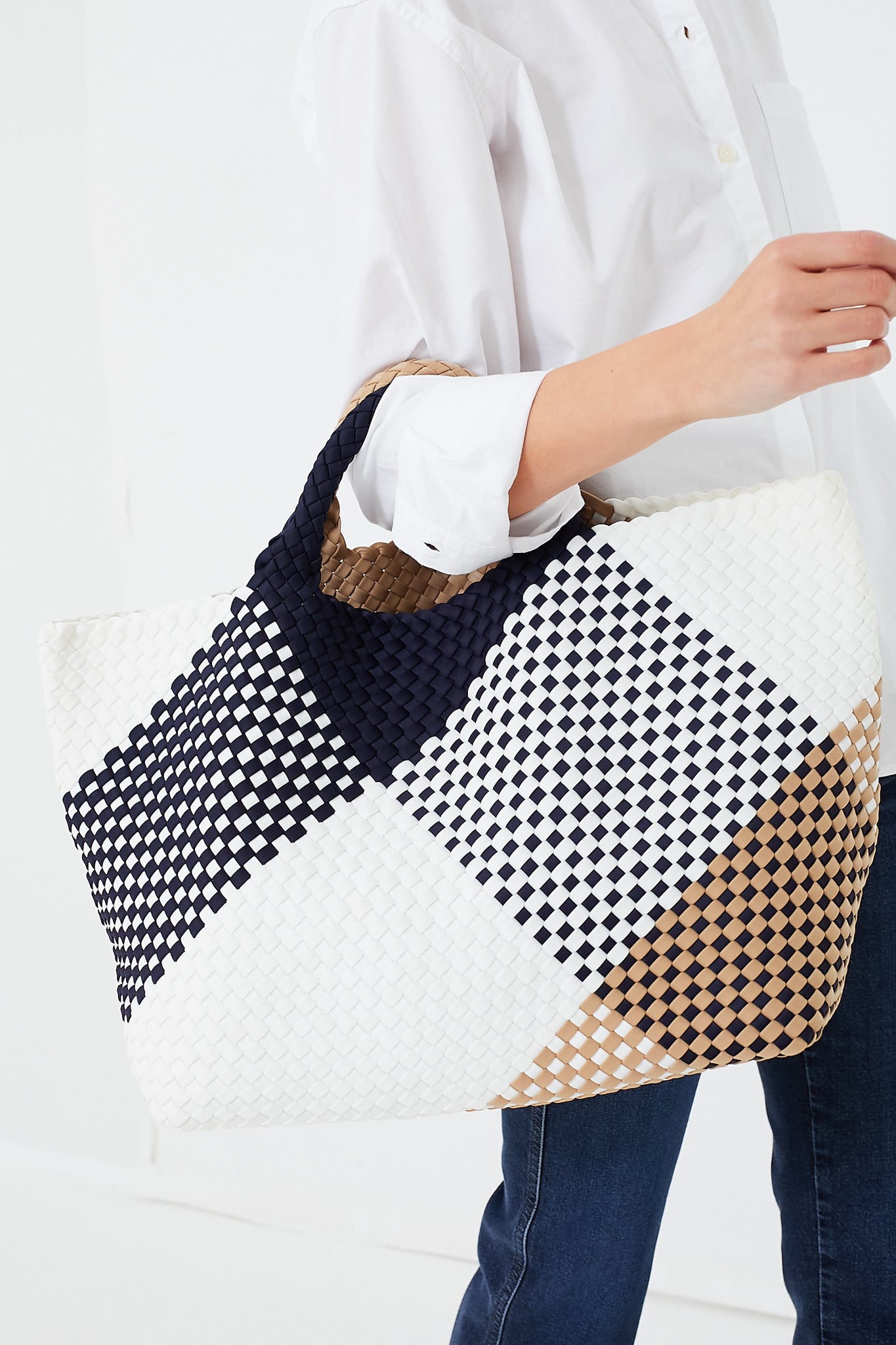 Crafted from durable neoprene, the Somerset St Barths Large Tote offers a fun new woven angle featuring a reverse weave on the opposite side, so it's like having two in one! This bag is a wardrobe hero, multifunctional and just right for adventuring by land, sand, or sea. Large enough for your essentials, this tote is a must-have! Toss all kinds of important belongings in here to make sure you are prepared all day while remaining fashionable as ever.