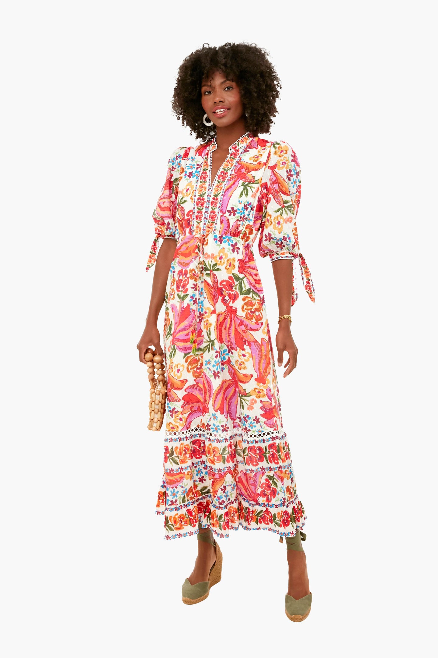 Bring more tropical nature to your wardrobe- the White Spring Bananas Maxi Dress has a relaxed fit for comfort with a bold, colorful print. Beaded tassels and lace detailing add an unexpected but fun touch. Pair with sandals and a clutch for vacation date night!