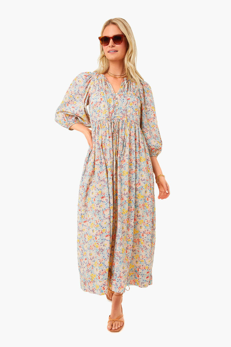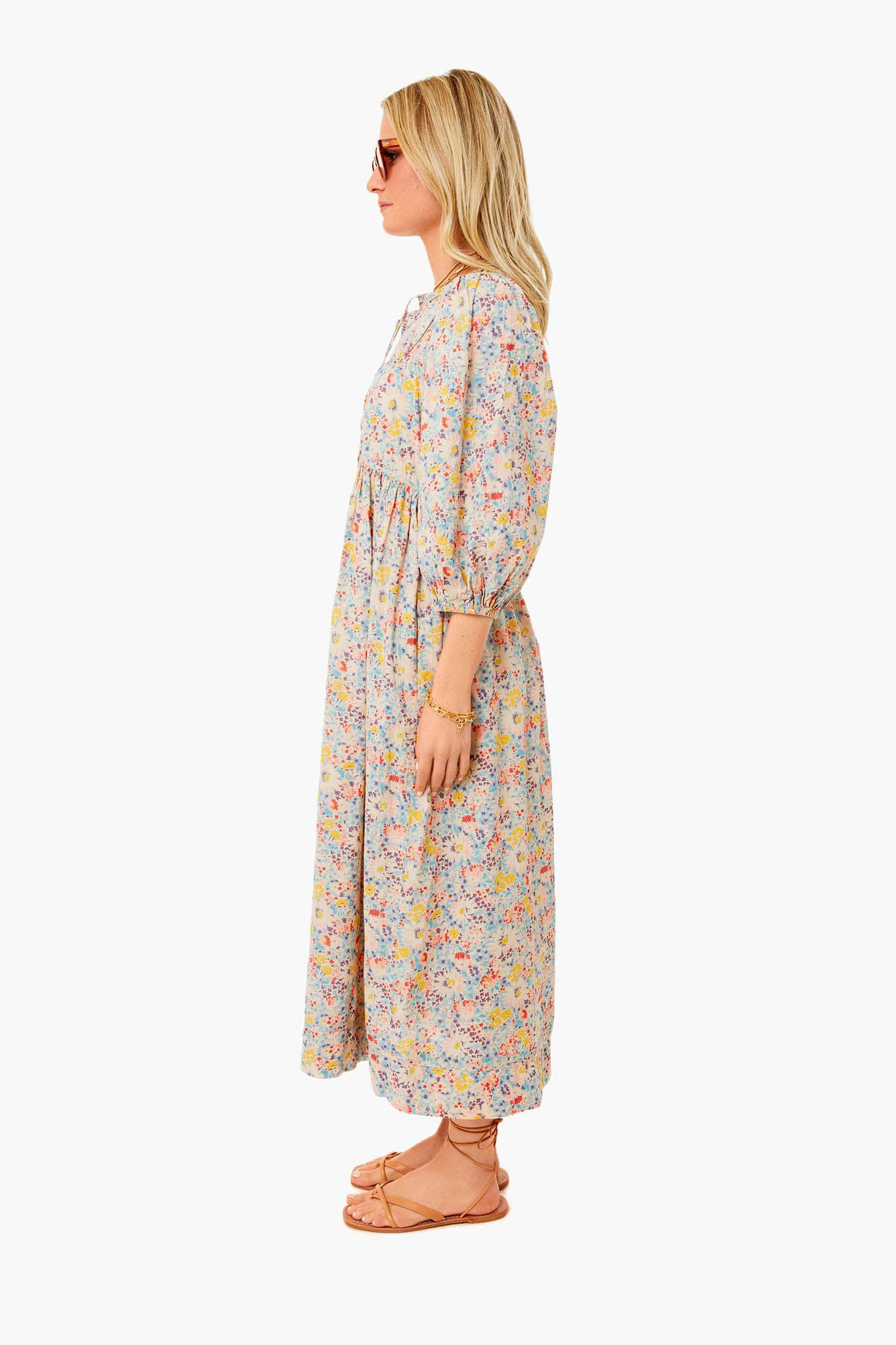 A worthy addition to any spring closet, The Bonnet Dress is cut from soft textured cotton printed with a colorful floral print. This staple piece features a dainty neck, blouson sleeves, and a deep front slit with buttons down the front to button up or open as much as one desires. This will transition perfectly from farmer’s market mornings to midday brunches with friends.
