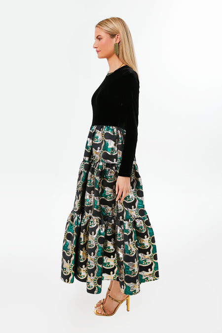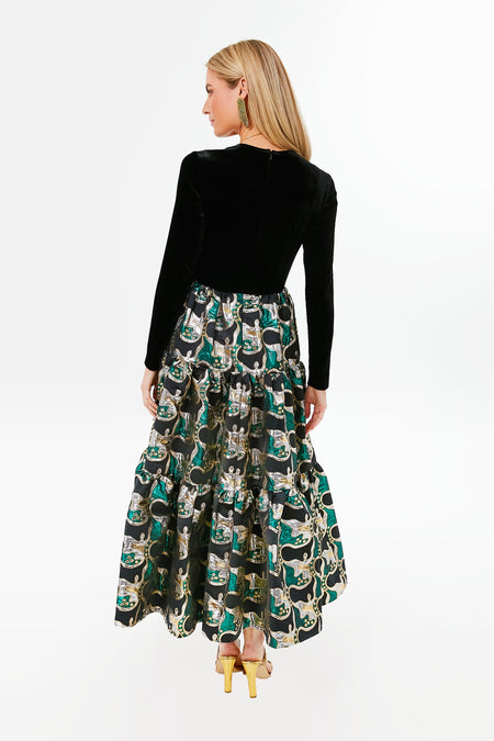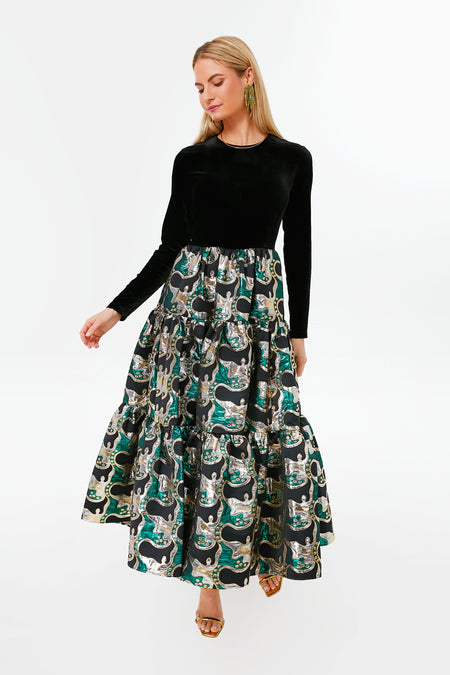 Fancy events can be a source of stress, so why make styling anything but simple? The Spritz Verde Big Dress combines the big eveningwear look of a statement skirt with the ease of throwing on a one-piece frock. This silhouette features a sleek, long-sleeved velvet bodice and flowing tiers of ankle-sweeping jacquard that come together to create a style that is unbearably chic and obviously one of a kind. Add some party pumps and a clutch, thenĀ consider your look sorted.
