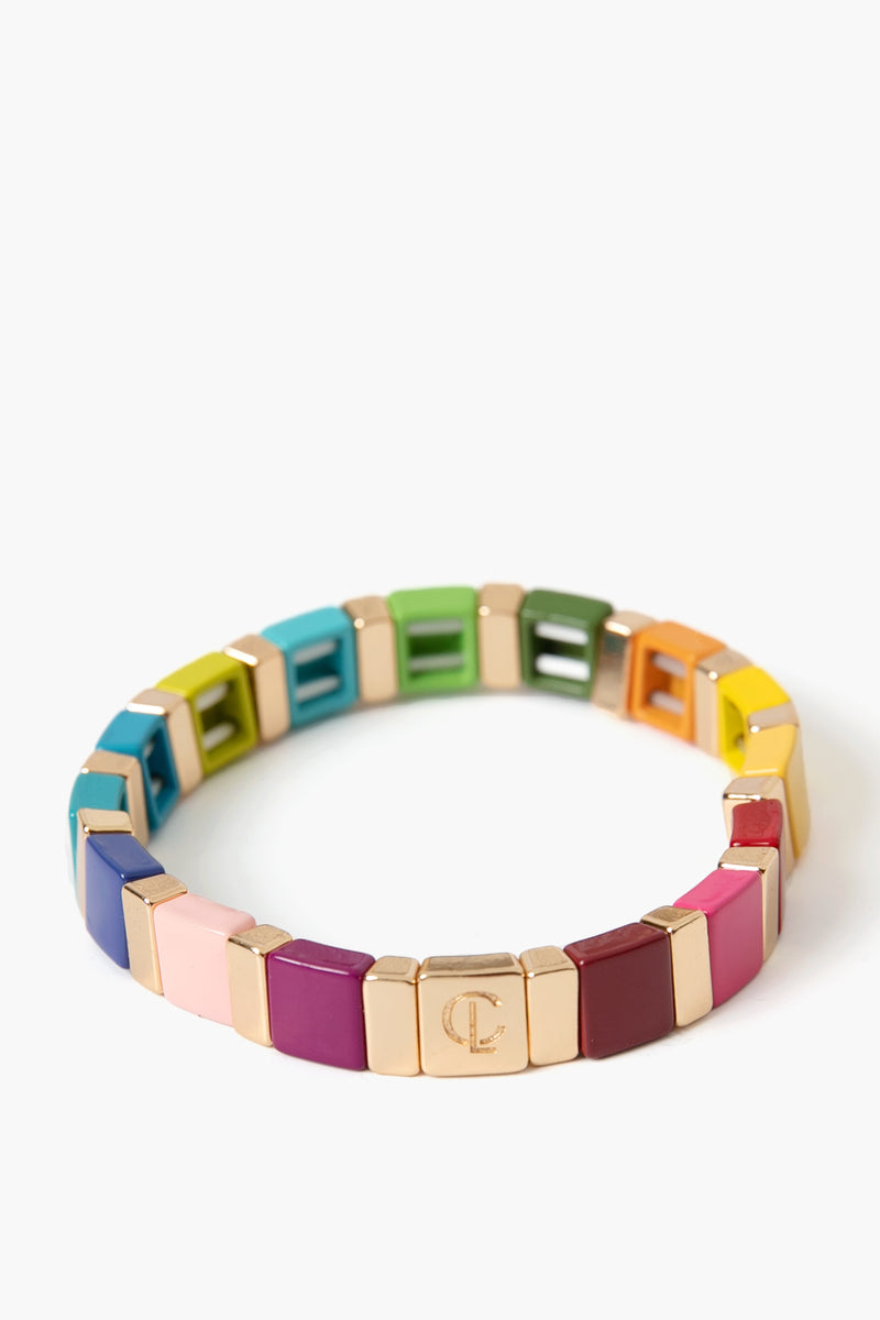 Instantly add a little color to your life with the Square Rainbow Tile Bracelet. This playful, stackable, bracelet is the perfect gift.