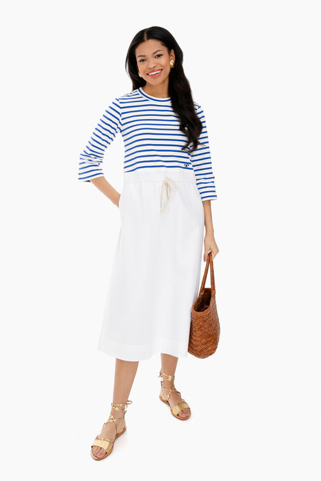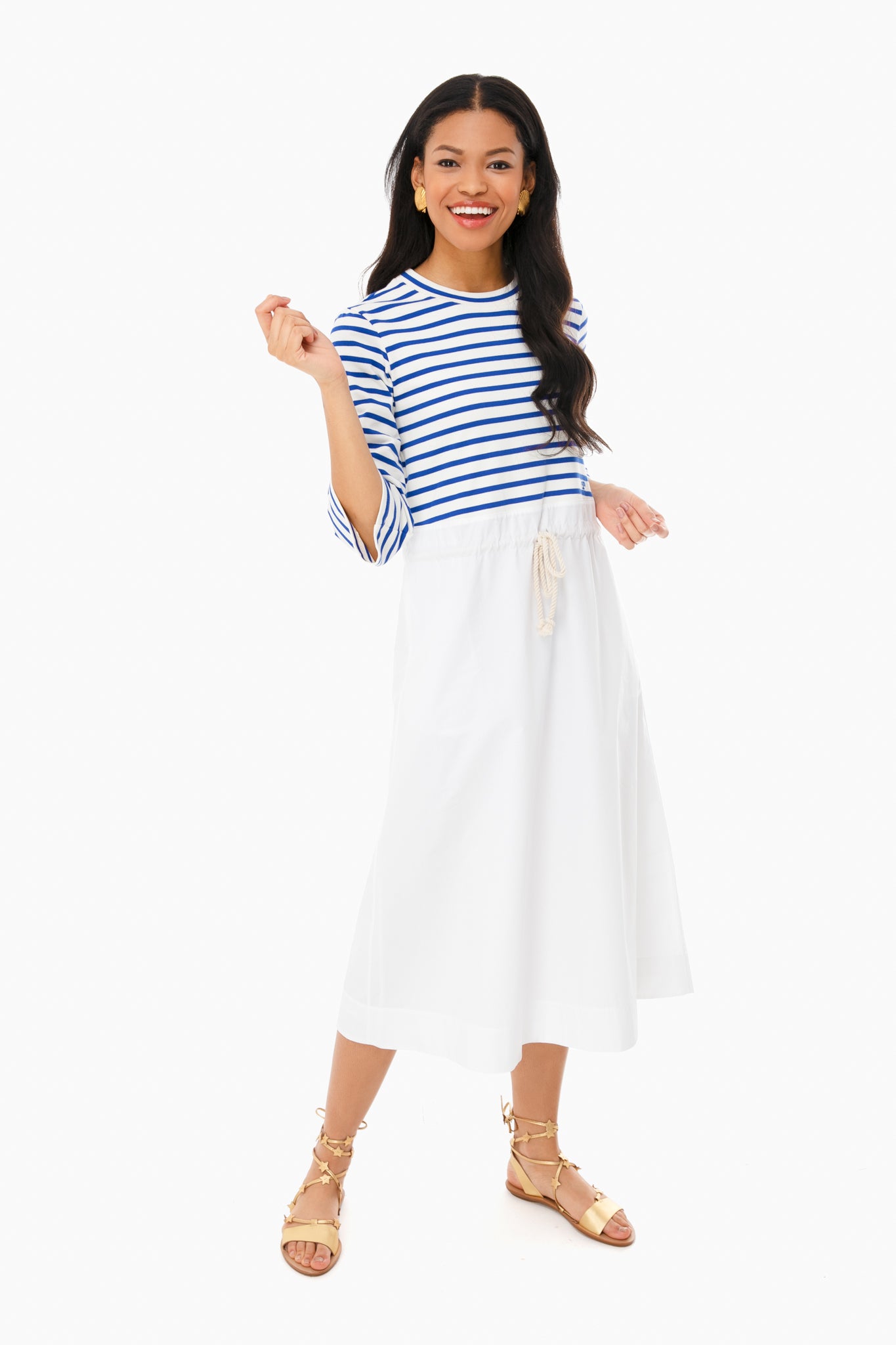 The Striped Knit Dress pairs a classic mariner top, a rope-tied waist, and a floaty poplin skirt. From sandals to wedges, this dress will instantly be the perfect nautical addition to your wardrobe.