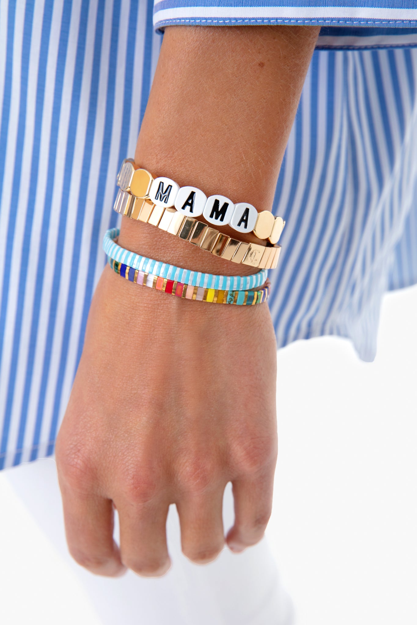 Instantly add a little fun to your wardrobe with the Striped Pale Blue Supernova Bracelet. This beaded, stackable bracelet makes the perfect gift!