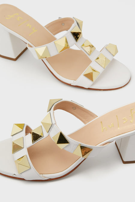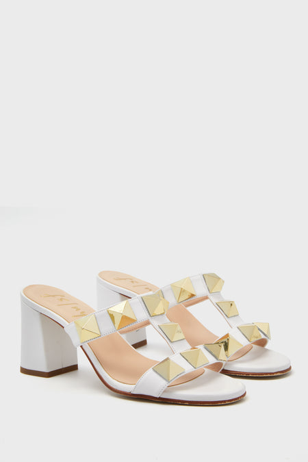 If you like the brand's signature Foster Sandal, prepare to love the White Adel Heels! Featuring oversized gold studded detailing that adds a bit of edge to a classic silhouette, these stunners are about to become your go-to shoe. With a comfortable block heel that can be worn day to night, from desk to drinks, and everywhere in between, you won't regret adding these to your rotation. Effortlessly chic in their neutral colorway, you can pair these with dresses of all prints and patterns, denim of all colors, and more!
