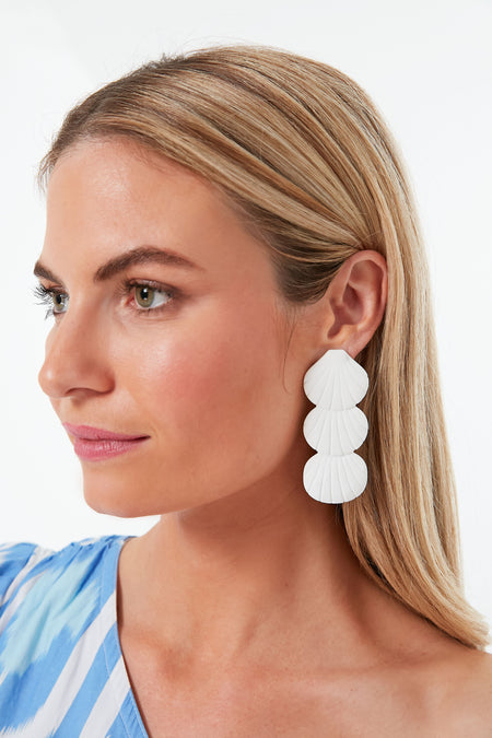 The Sugar Cane Earrings are inspired by that nostalgic feeling of looking for shells on the beach during low tide. A beautiful display of three tiered seashells, these stunners are the perfect addition to any travel destination look or just for fun!