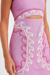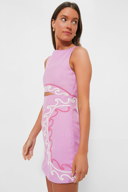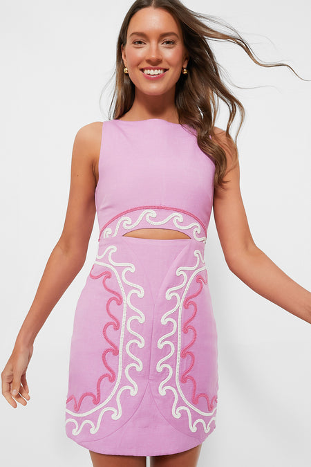 Designed to flatter the feminine form, the Taffy Nara Dress features a high neckline, subtle front bodice cut out and statement embroidery detail through the front of the skirt and hemline. Seamlessly transitions from day to night we love wearing this mini with sandals for an easy daytime look and switch to heels and statement jewelry for a night of cocktails and celebration with friends.