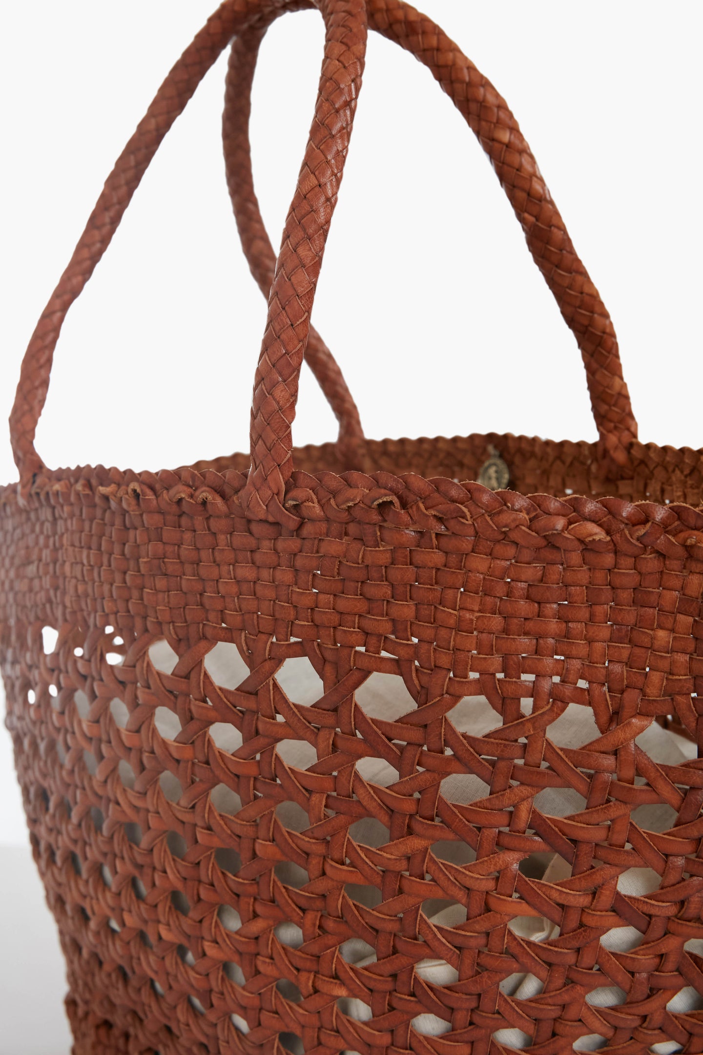The Tan Market Bag is an open-top basket that uses the classic cannage weave made famous by Michael Thonet and his classic rattan 'bistro chair'. Spacious and hand-woven in smooth buffalo calf leather, the soft structure of this tote will hold everything you need for a day out — whether you're wandering around your local market or having a picnic at the beach!