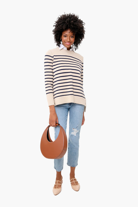 The Tan Moon Tote is a structured shoulder bag made from leather in a cognac hue. Practical and unique, this style pairs easily with neutral classics and bold day dresses.