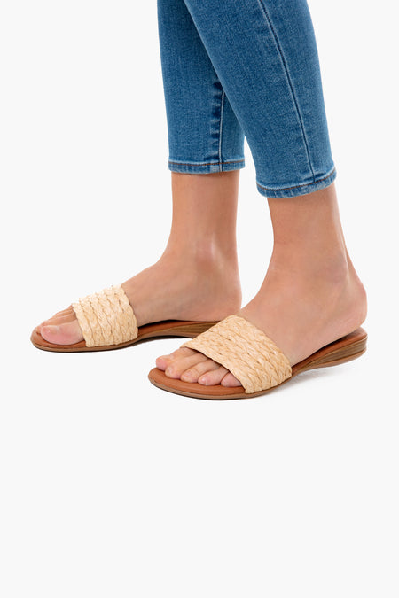 Woven detailing gives the Tan Nahala Sandals a rich and luxurious texture. Crafted in Spain, these slides are the perfect addition to any warm-weather wardrobe. Pair with bright dresses and raffia accessories for a fun day in the sun!
