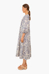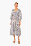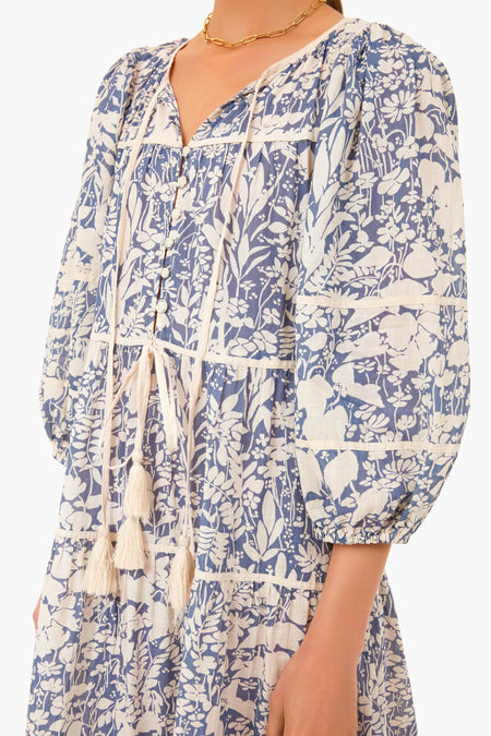 The Tassel Tie Blouson Dress is an oversized and billowy style in a lightweight, vintage-inspired mariner blue island floral print. Featuring a covered button front, tassel ties at the neckline and drawstring waist, and long puff sleeves that can be pushed up the arm for a more dramatic shape- this midi leaves no detail spared. Pair with sandals and gold jewelry for an effortlessly chic daytime look.