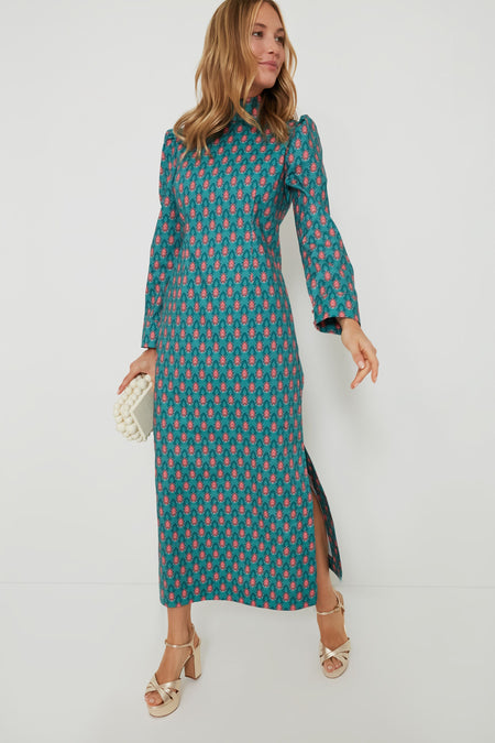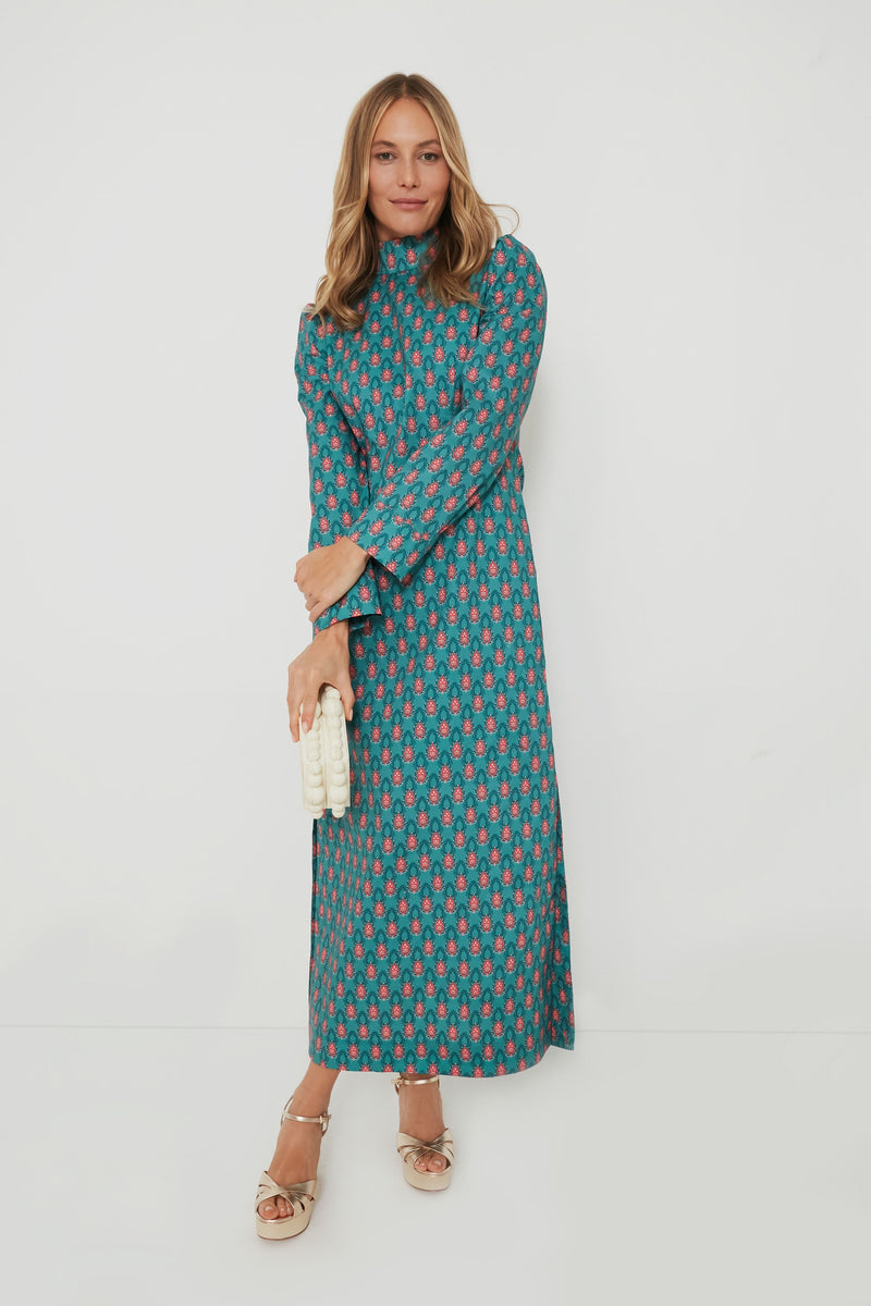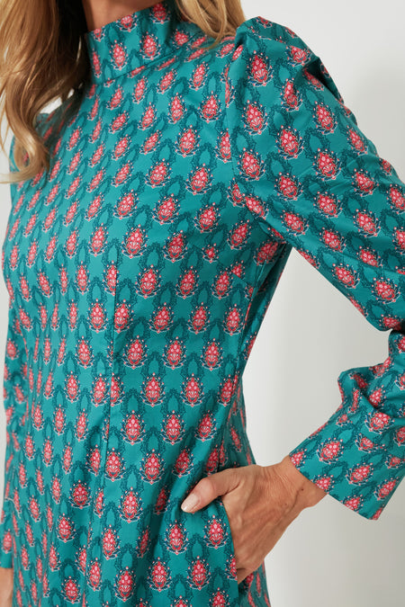The Floral Mock Neck Maris Dress is the perfect all-occasion dress- enhancing a simple contour with a bright and colorful pattern. With soft cotton fabric and long sleeves, you can style this in any and all seasons, making it the perfect closet staple. We are pairing this with simple heels and a clutch for weddings and parties, and with red ballet flats for a chic daytime look.