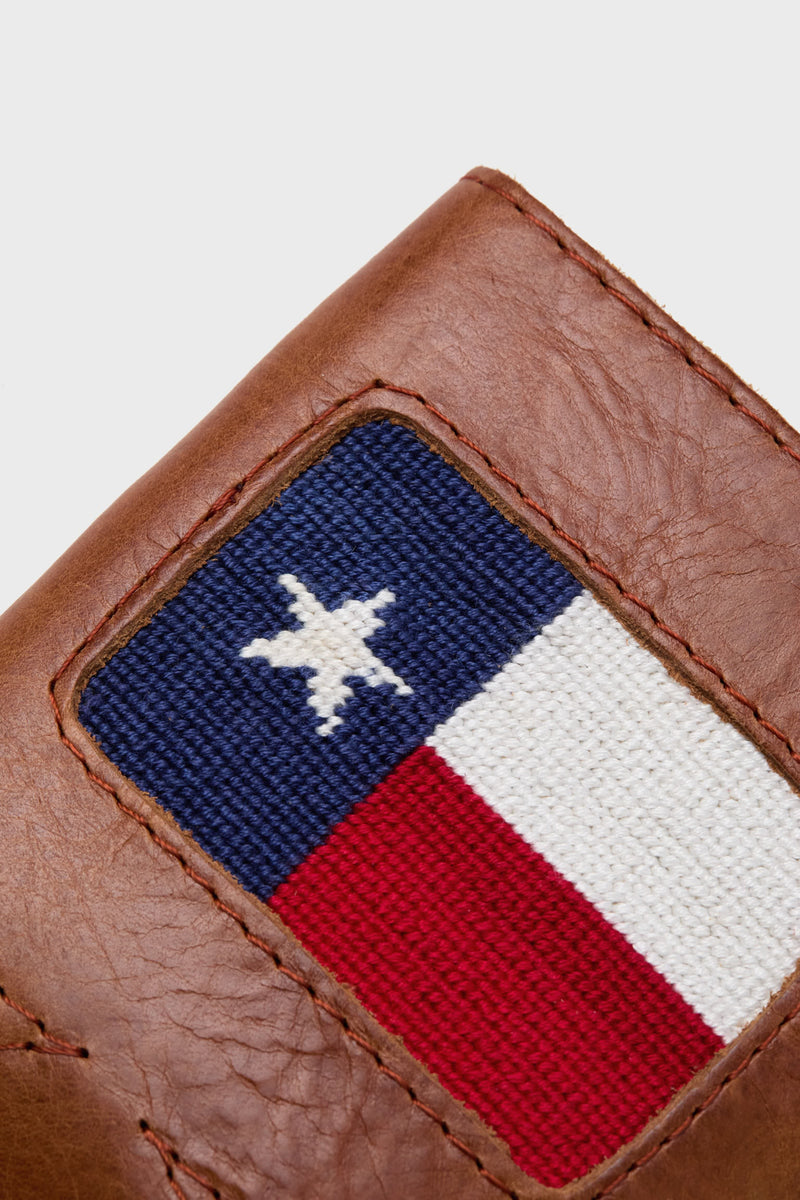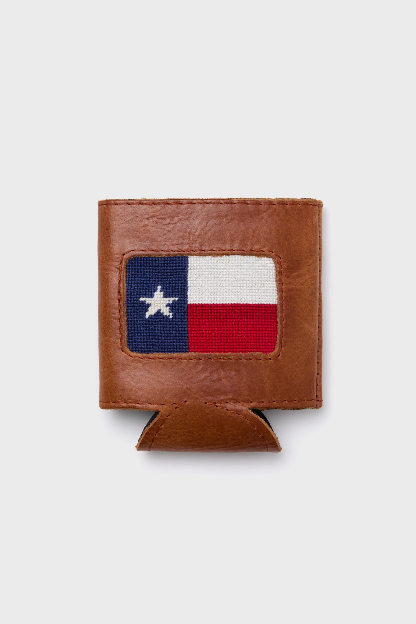 The Texas Flag Needlepoint Can Cooler ensures your drink is just as stylish as you are! Crafted with the Italian full grain leather and neoprene lining ensure your drink stays cold and your hands stay warm and dry. The hand stitched needlepoint design is made with durable materials that won't fray or fade for many parties to come. Pick one up today for the Texan in your life!