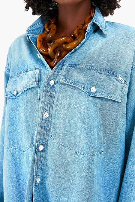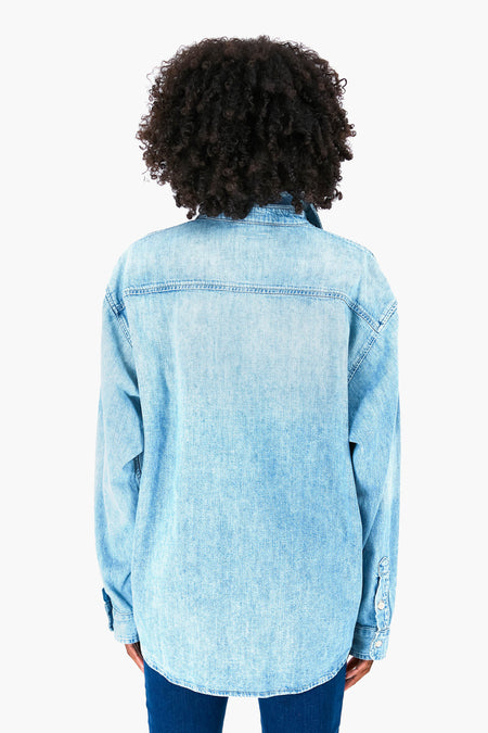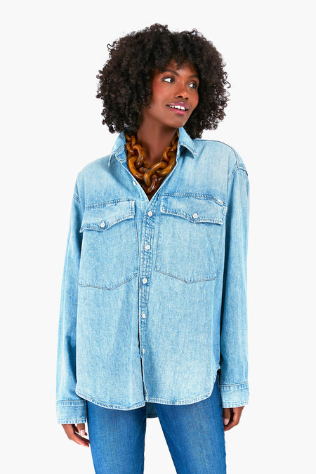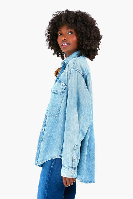 Whether you want an easy look to wear for weekend adventures or a cozy piece for lounging at home, the Double Flap Roomie Foxy Shirt is just it. With a spread collar, oversized patch pockets, and a timeless light blue wash, you will want to wear this top over and over again. Style unbuttoned over a white tee for a casual look, or button it up with a statement necklace and chunky shoes.