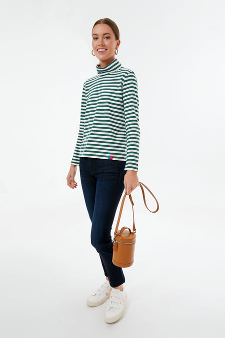 The Forest and Cream Turtleneck bases its design on the styles worn by Picasso and Brigitte Bardot, with the cozy addition of a high neckline. Featuring a straight, boxy cut, this is fitted perfectly for a feminine shape but loose enough for a relaxed look. Made from light and airy tissue-like cotton, it is the perfect layering piece as the days get cooler, so try it under a cardigan for brunch or under a puffer coat for a walk in the crisp air, or on its own to curl up by the fire.