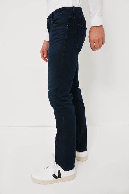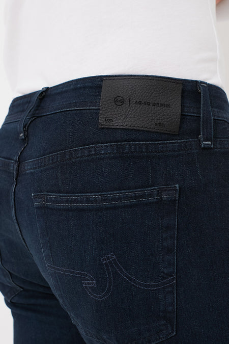 The Gradaute is AG Jean's take on a classic, tailored-leg silhouette. In a dark blue wash with subtle fading and a slim mid rise waist, these are a sophisticated closet staple. With a relaxed fit from hip to knee and slight tapering at the leg opening, these pants can be dressed up or dressed down for all-occasion wear.