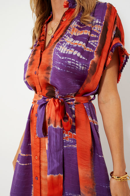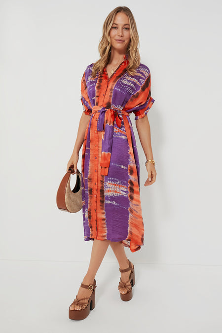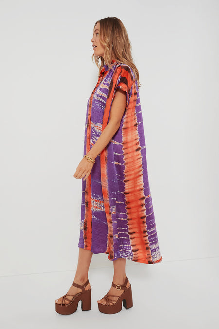Slip away to sunny days outside with the Valerie Kaftan. Rich in colorful hues, this tie dye style features a spread collar, short sleeves, a curved hem, and a removable tie at the waist so you can choose to wear it loose or cinch the waist. This relaxed silhouette is breathable and allows for optimal movement! Style with sandals and your favorite sunnies for a day in the garden or brunch with friends.