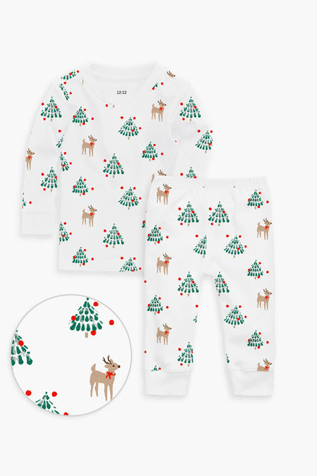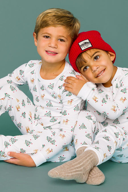 The Tinsel Trees Organic Long Sleeve Pajama Set is giving us all the holiday vibes while ensuring your toddler stays warm and cozy all night long. Made from the absolute softest cotton in the world, with a crew neck style top and cuffed pant, these modern toddler pjs are snug fitting to eliminate the need for flame retardants. Sustainably and ethically produced, they meet OEKO-TEX Standard 100 requirements - meaning they’re free of harmful chemicals like PFCs, PVC, and flame retardants. Now you can put your little one to rest knowing they're tucked in with the best!