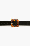 Famous for creating the beloved knotted headband, Lele Sadoughi makes trend-setting and expertly crafted accessories. This belt is made from calf skin leather and a tortoise acetate buckle. Pair with denim and a feminine blouse to elevate your look!